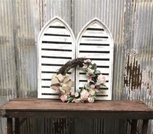 Distressed White Window Shutter Frame, Arched Wood Shutter Window Frame Decor