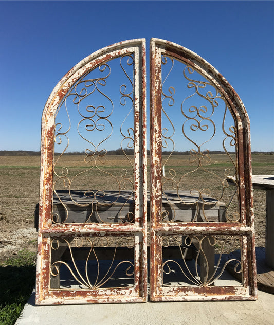 Pair Farmhouse Window Frame Shutters, Architectural Wood Window Frame Decor