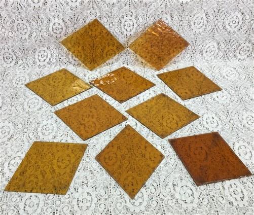 10 Honey Gold Stained Glass Reclaimed Church Window Diamond Panes, Art Glass E,
