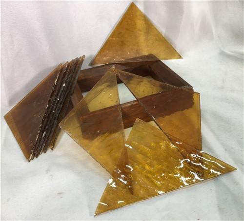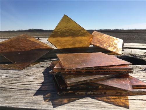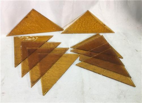 10 Honey Gold Stained Glass Reclaimed Church Window Triangle Panes, Art Glass N,