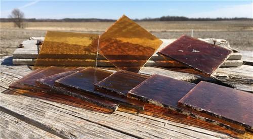10 Honey Gold Stained Glass Reclaimed Church Window Diamond Panes, Art Glass E,