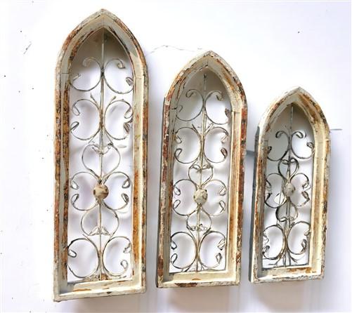Set 3 XL Arched Wood Metal Gothic Window Frames, Architectural Window Frame Set,