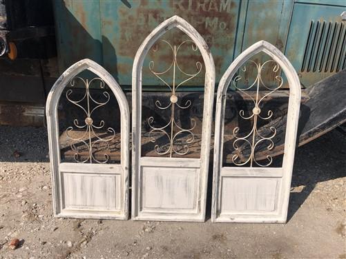 3 Arched Wood Metal Gothic Window Frames, Architectural Church Window Frames,