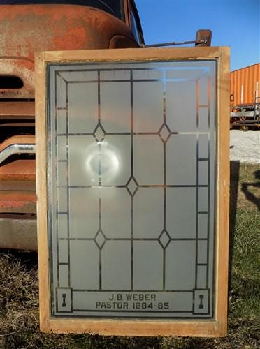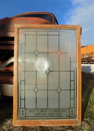 Etched Frosted Clear Glass Vintage Church Window, Architectural Art Glass, E