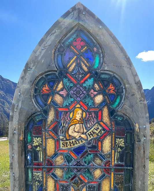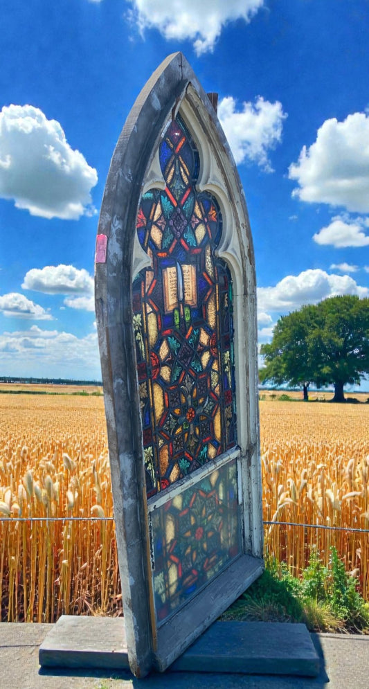 Antique Arch Stained Glass Window (31x74) Gothic Church Window, Stained Glass K1