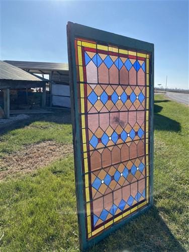 Antique Arch Stained Glass Window (31x74) Gothic Church Window, Stained Glass I1
