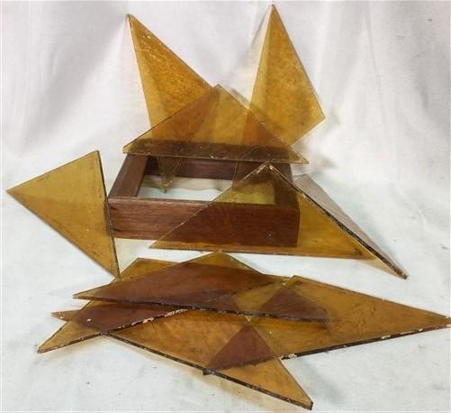 10 Honey Gold Stained Glass Reclaimed Church Window Triangle Panes, Art Glass N,