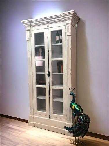 Library Bookcase, 2 Door White Display Case, Showcase, Kitchen Cabinet A