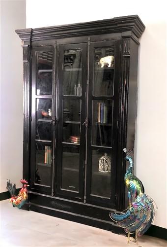 3 Door Black Bookcase, China Cabinet, Kitchen Cabinet, Display Case, C