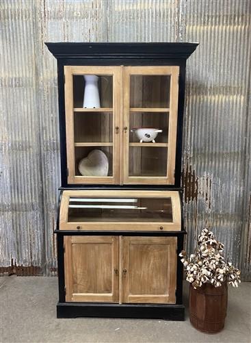 Curved Door 6'10" Black with Teak Kitchen Cabinet, Kitchen Storage, Cupboard, B