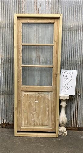 Antique French Single Door (32x79.5) Glass Pane Door with Jamb, Encased Door T37