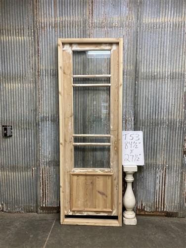 Antique French Single Door (32.5x86) Glass Pane Door with Jamb, Encased Door T9