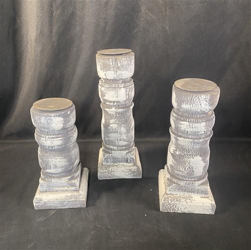 Set 3 Gray Wooden Pillar Candlestick Holders, Mantel Decor, Table Centerpiece,