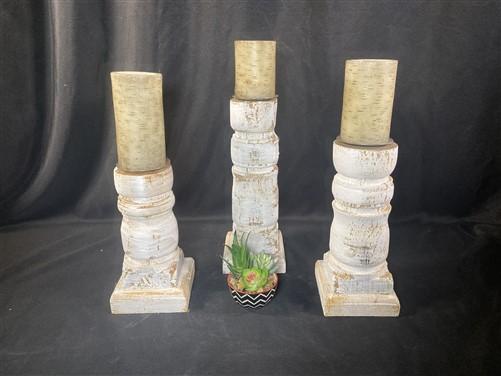 Set 3 White Wooden Pillar Candlestick Holders, Mantel Decor, Table Centerpiece,