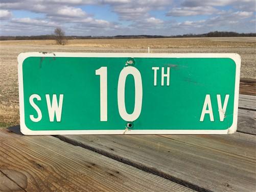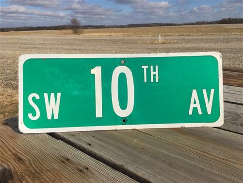 SW 10th AV Street Sign, 9x24 Vintage Green Road Sign, Metal Road Sign, F