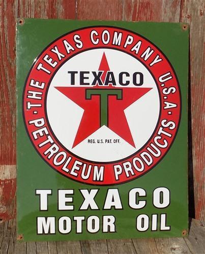 Texaco Motor Oil Sign, Metal Porcelain Advertising Sign, Gas Station Pump A.