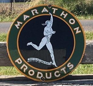 Marathon Products Sign, Metal Porcelain Advertising Sign, Gas Petroleum A