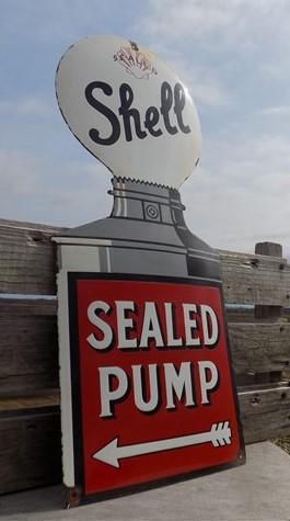 Shell Sealed Pump Sign, Shell Porcelain Metal Advertising, Gas Station Oil D