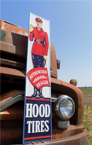 Hood Tires Sign, Tin Advertising, Gas Service Station Sign, Authorized Dealer A