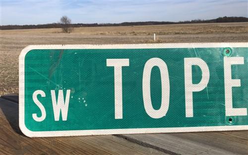 Topeka BLVD Street Sign, Vintage Green Road Sign 42x9 Metal Wall Sign Garage Art