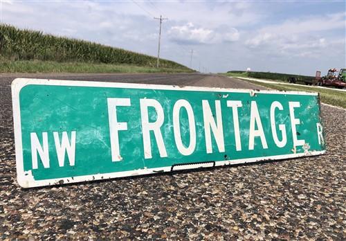 Frontage Rd Street Sign, Vintage Green Road Sign, 40x9 Metal Wall Sign, Garage
