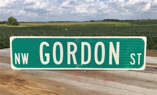 Gordon St Street Sign, Vintage Green Road Sign 36x9 Metal Wall Sign Garage Art B