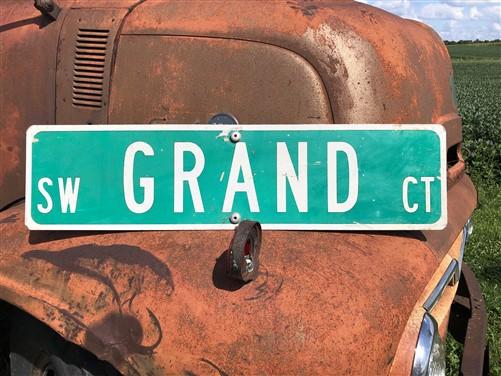 Grand Ct Street Sign, Vintage Green Road Sign, 36x9 Metal Wall Sign, Garage Art