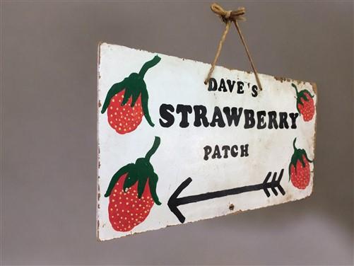 Dave's Strawberry Patch Sign, Vintage Farmers Market, Folk Art Advertising A,