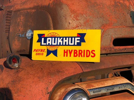 Laukhuf Hybrids, Vintage Metal Advertising Sign, Payne Ohio, Seed Corn Sign 20x9