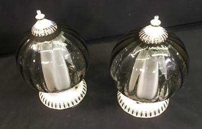 2 Elegant Ceiling Mount Light Fixtures, Cream Gold Metal Vintage Light