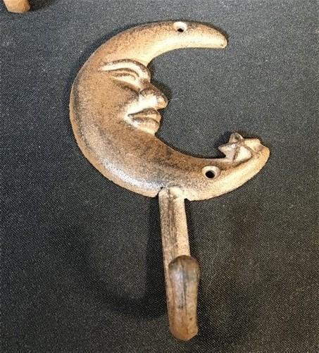 5 Cast Iron Man in the Moon Hooks, Rustic Hardware, Wall Mount Hardware Hooks