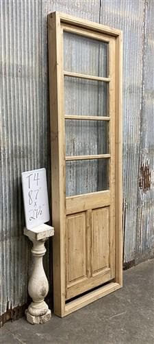 Antique French Single Door (27x81.5) Glass Pane Door with Jamb, Encased Door T27