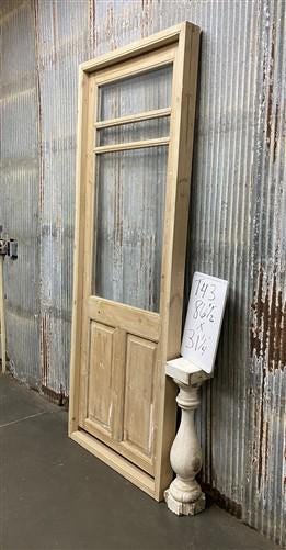 Antique French Single Door (30x89.5) Glass Pane Door with Jamb, Encased Door T30