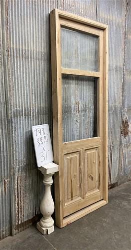 Antique French Single Door (31.5x90) Glass Pane Door with Jamb, Encased Door T29