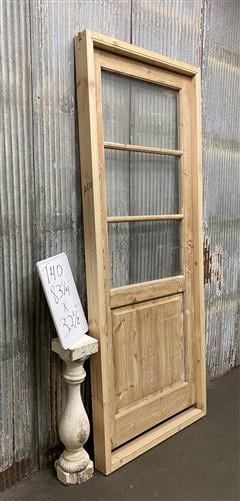 Antique French Single Door (32.5x83) Glass Pane Door with Jamb, Encased Door T54