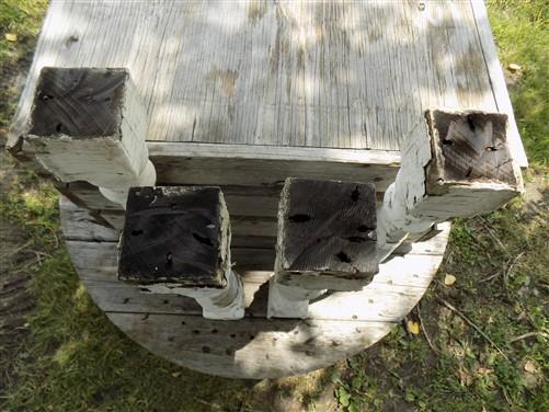 Check out these shabby chic Balusters! Each spindle measures approximately 2 3/4" side to side, 2 3/4" front to back, and 20" top to bottom. These porch post pieces do have chipping paint and the ends do have some damages, see photos. What will you create with these white wood architectural salvage pieces?