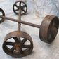 4 Factory Cart Wheels & 2 Axles Cast Iron Vintage Lineberry Industrial Age f