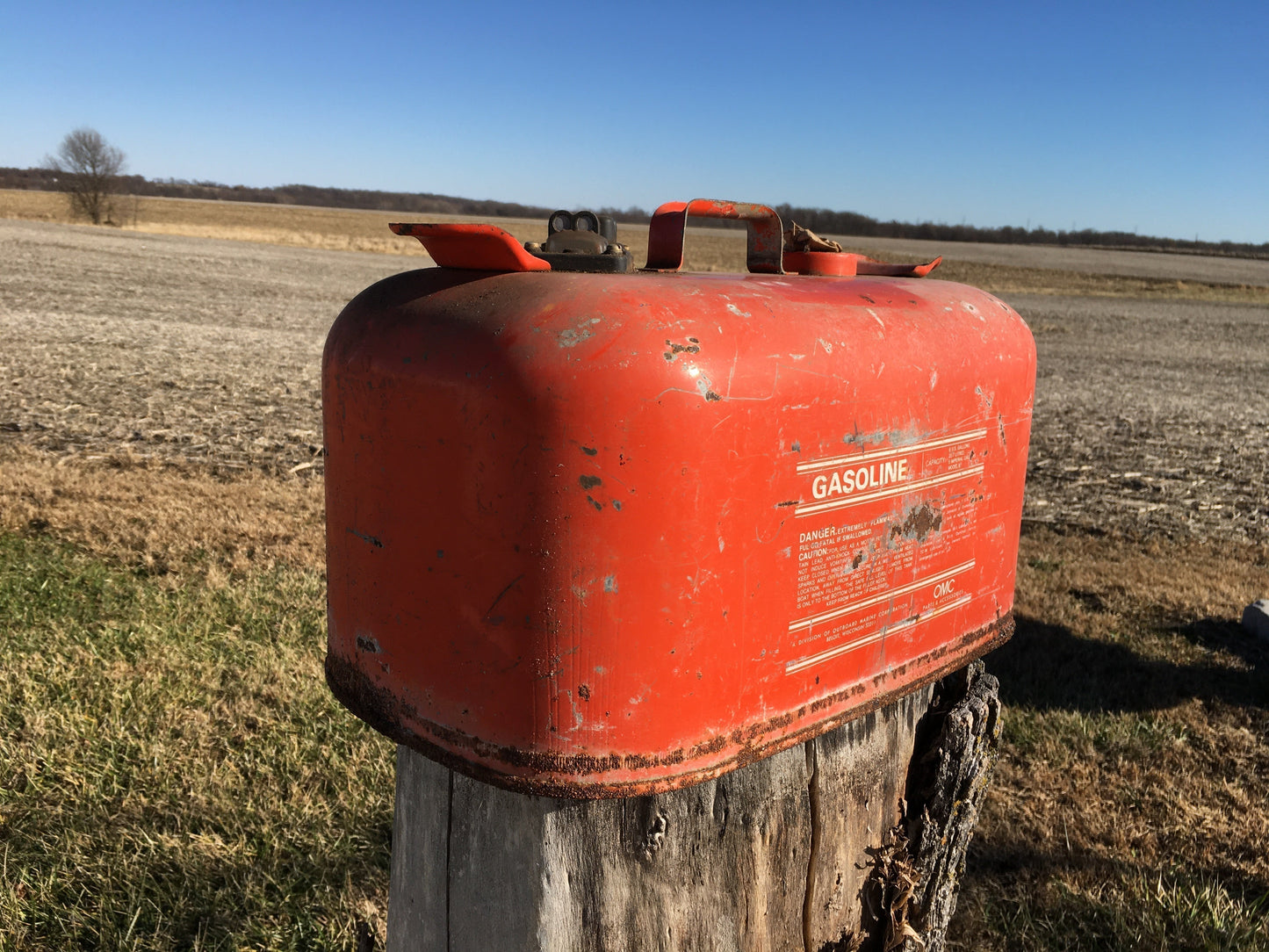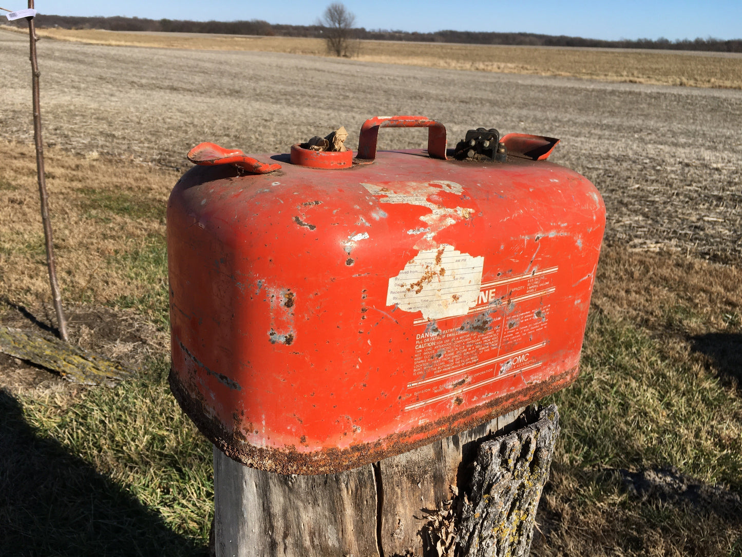 Nice vintage OMC 6 gallon gasoline tank, looks used but still looks good, scuffs and a little rust, it is missing the cap. If you have a bad can and a good cap you are in luck!