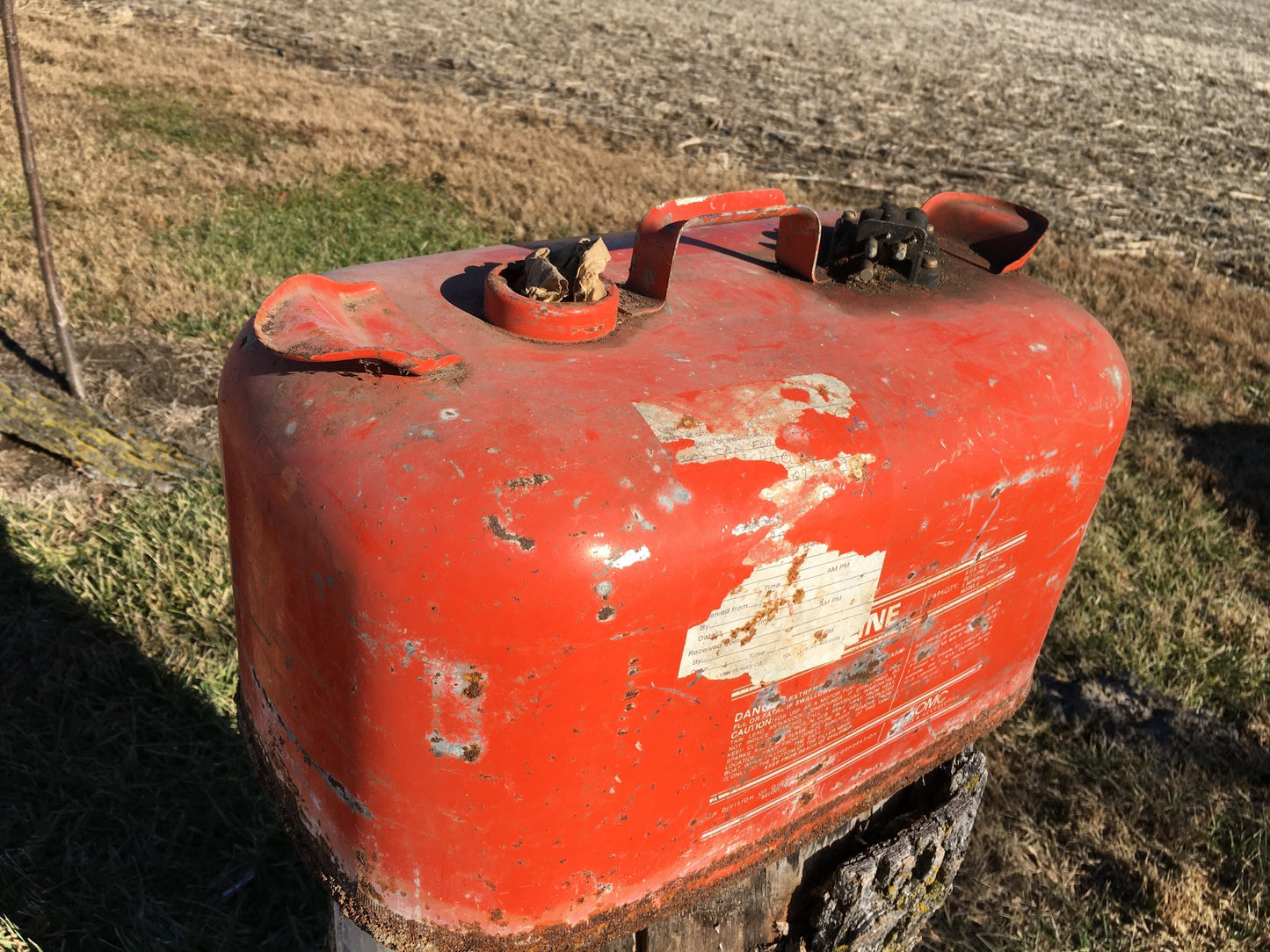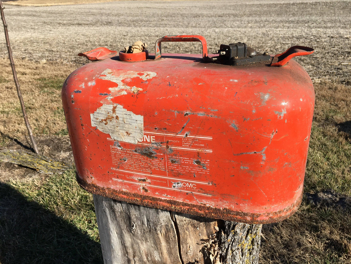 6 Gallon OMC Gasoline Gas Fuel Tank, Vintage Outboard Boat Motor Gas Can A13