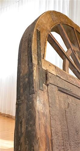 Antique Arched Double Door with Transom - Rustic Weathered Patina - Architectural Salvage