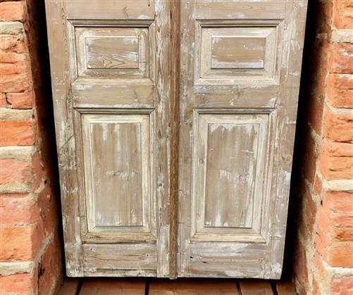 Authentic antique solid wood double doors salvaged from an early interior installation. These doors feature classic raised panel construction with strong proportions and original joinery. The wood shows attractive grain, knots, and age-appropriate wear that adds real character.