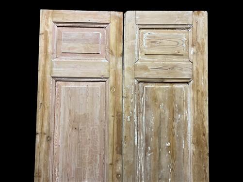 Antique Solid Wood Double Panel Doors, Salvaged Interior French Doors Authentic antique solid wood double doors salvaged from an early interior installation. These doors feature classic raised panel construction with strong proportions and original joinery. The wood shows attractive grain, knots, and age-appropriate wear that adds real character. Panels are well defined with a traditional layout that works equally well for restoration, architectural reuse, or decorative applications. Ideal for interior doorways, pantry doors, closets, or re-purposing into wall décor, room dividers, or furniture projects. Surface wear, old nail holes, and patina are consistent with age and use. No rot observed. Hardware not included unless shown in photos. Instagram: theoldgrainery You are also welcome to visit or call us Monday-Friday 9am-4pm Central Time to discuss purchases. Our number is 217-779-3992. Be prepared with the title.