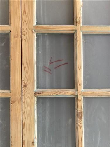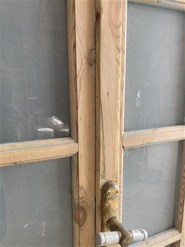 These are authentic antique doors and show wear consistent with age and use, including scratches, paint remnants, nail holes, cracks, wood filler, and minor damage. Please review all photos carefully for details on condition and existing hardware-what you see is what is included. A striking set perfect for period homes, modern farmhouses, or upscale renovation projects.