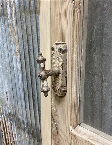Although currently nailed shut to the frame, this door is in good physical condition, ready to stand tall and make a statement in your chosen setting. Bearing the marks of age, scratches, nail holes, cracks, and minor damage tell a story of decades gone by, adding a touch of authenticity to its allure. Please note in the photos: four notches on the left side of the door and a few scrapes on the right side.