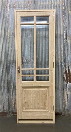 Antique French Single Door (29.5x88) Glass Pane Door with Jamb, Encased Door T24