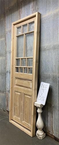 Antique French Single Door (31.5x98) Glass Pane Door with Jamb, Encased Door T55