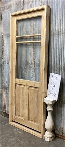 Antique French Single Door (32.5x86) Glass Pane Door with Jamb, Encased Door T9