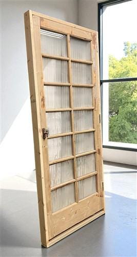 Antique French Single Door (37x86.5) Glass Pane Door with Jamb, Encased Door T35