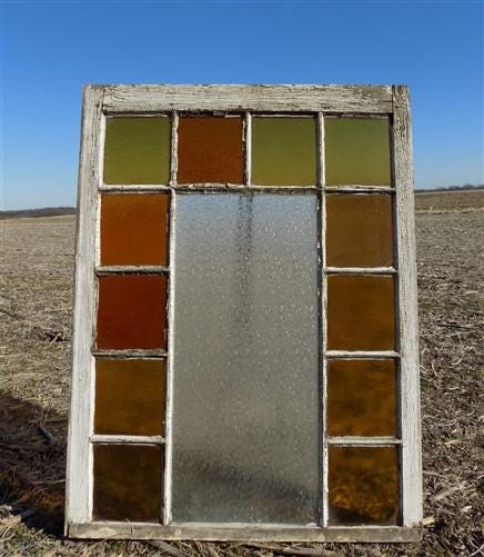 Antique Stained Glass, Rectangular Church Window, Architectural Art Glass, A2