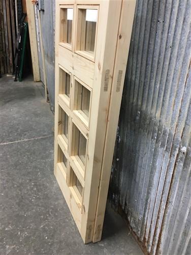 These new doors have an old-world charm, with a blend of modern and traditional design. They are made of solid pine wood with clear glass. You will find some natural imperfections in the wood such as knots and very minor cracks. Though new, the wood also bears minor stains, enhancing its vintage appeal. They have not been pre-drilled holes for hardware, providing you the freedom to add your unique touch. Hardware is not included, allowing for a personalized choice that complements your style. These doors also do not come with a frame for installation.